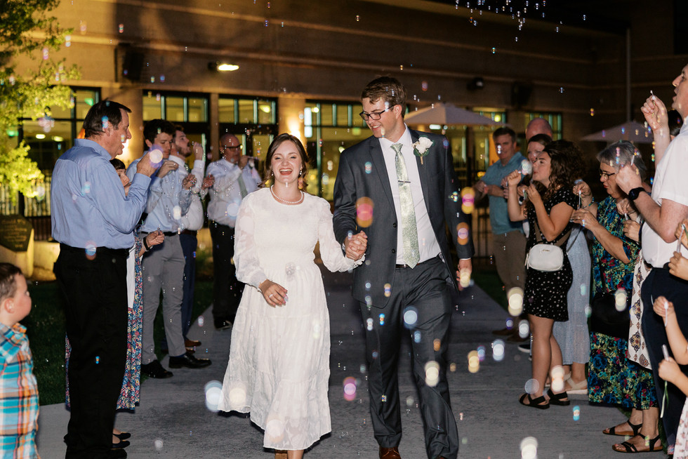 The celebration continued with an elegant reception at the CenterPlace Regional Event Center. Jenny had thought of every detail, from the delicious food to the beautiful floral arrangements that she carefully crafted herself. Jenny & Ryan graciously welcomed each guest before moving on to the cake cutting, dancing, and their final send-off in a shower of bubbles.